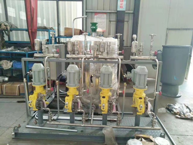 加药系统是一套完整的设备,配料,混合,液体的输送,在一个自动控制,原水,水,油田锅炉,广泛应用于发电厂集输脱水处理系统,石油化工各种加药系统和废水处理系统。作为混凝剂,磷酸盐,氨,石灰水,缓蚀剂,阻垢剂,剂等。加药装置主要由搅拌罐,溶液箱,计量泵,管道阀门,在机电一体化设备电气控制柜组合平台。